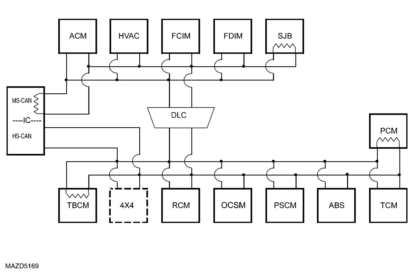 The HS-CAN communicates using bussed messages. The HS-CAN uses an unshielded twisted pair cable, data bus (+) and data bus (-) circuits. In addition to scan tool communication, this network allows sharing of information between all modules on the network.The HS-CAN is a high speed communication network used for the following modules:
