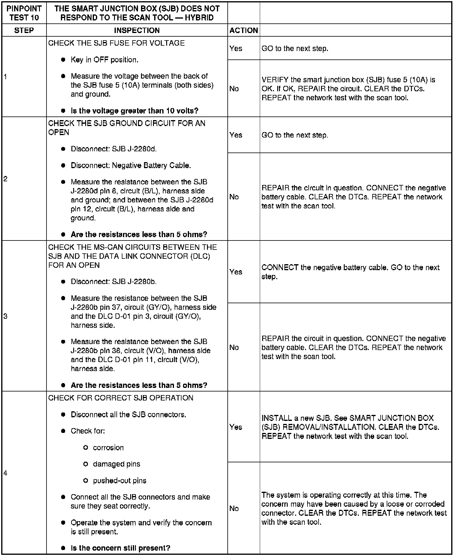 PINPOINT TEST 10: THE SMART JUNCTION BOX (SJB) DOES NOT RESPOND TO THE SCAN TOOL - HYBRID