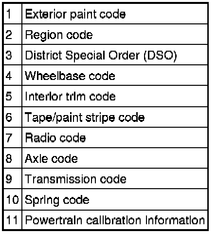 Powertrain calibration information is printed in the lower right corner of the VC label. Only base calibration information is printed. Revision levels will not appear, however, they can be obtained through a scan tool using the most current software revision.