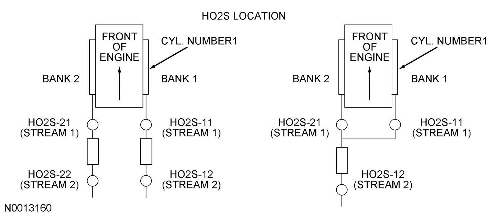 Only 2 HO2Ss are used in an exhaust stream. The front sensors (HO2S11/HO2S21) before the catalyst are used for primary fuel control while the sensors after the catalyst (HO2S12/HO2S22) are used to monitor catalyst efficiency.