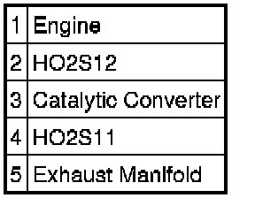 The purpose of the exhaust system is to convey engine emissions from the exhaust manifold to the atmosphere. Engine exhaust emissions are directed from the engine exhaust manifold to the catalytic converter through the front exhaust pipe. A HO2S is mounted on the front exhaust pipe before the catalyst. The catalytic converter reduces the concentration of CO, unburned HCs, and NOx in the exhaust emissions to an acceptable level. The reduced exhaust emissions are directed from the catalytic converter past another HO2S mounted in the rear exhaust pipe and then on into the muffler. Finally, the exhaust emissions are directed to the atmosphere through an exhaust tailpipe.