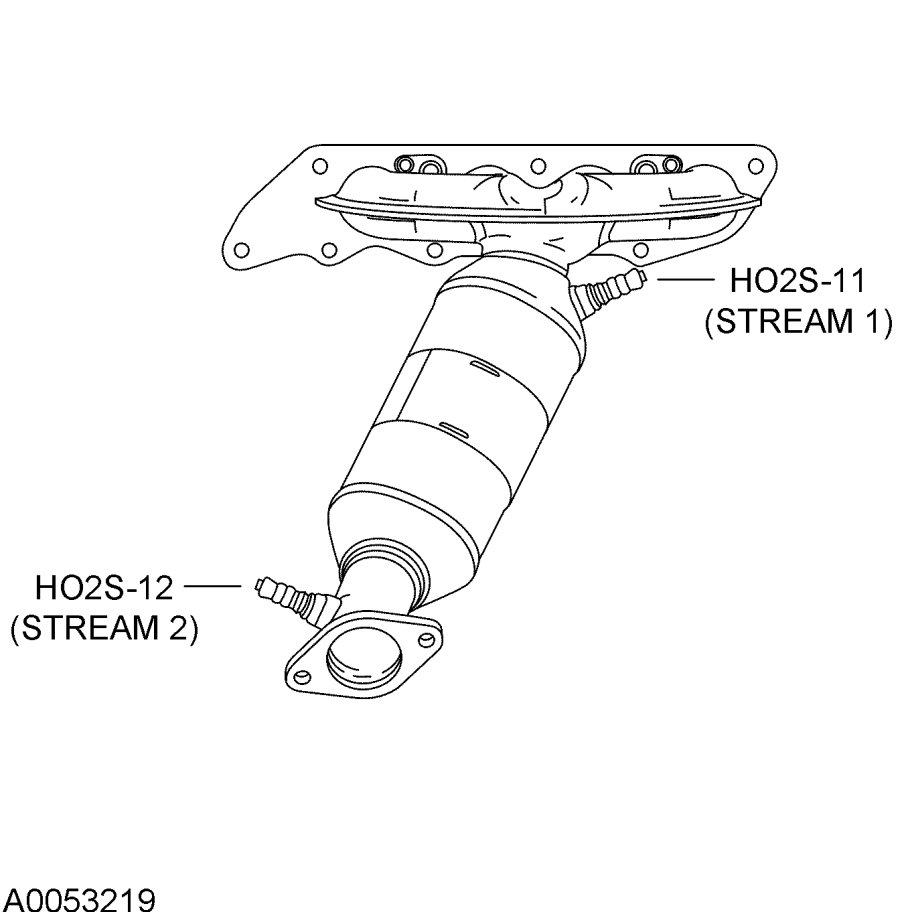 The exhaust system consists of an exhaust manifold, front exhaust pipe, upstream heated oxygen sensor (HO2S), rear exhaust pipe, downstream HO2S, a muffler and an exhaust tailpipe. The catalytic converter is installed between the front and rear exhaust pipes. Catalytic converter efficiency is monitored by the OBD II system.