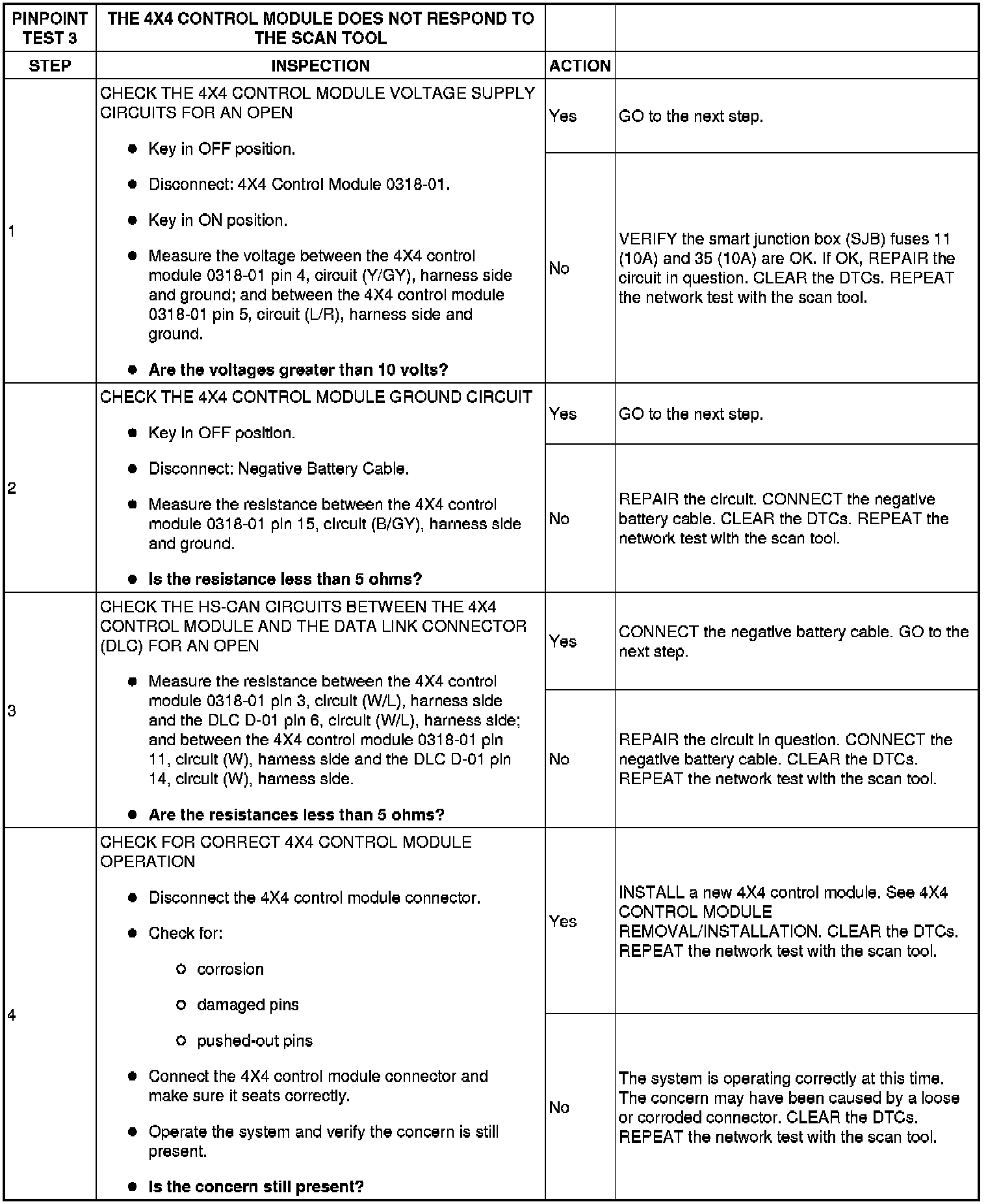 PINPOINT TEST 3: THE 4X4 CONTROL MODULE DOES NOT RESPOND TO THE SCAN TOOL
