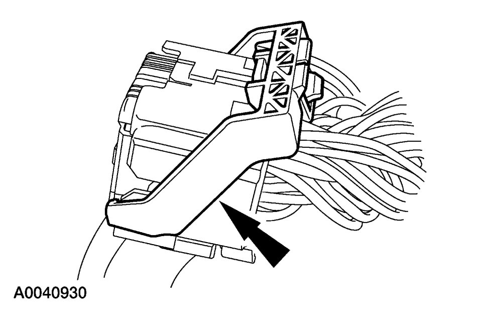 5. Disengage the lock tab, press and disconnect the small RCM electrical connector.