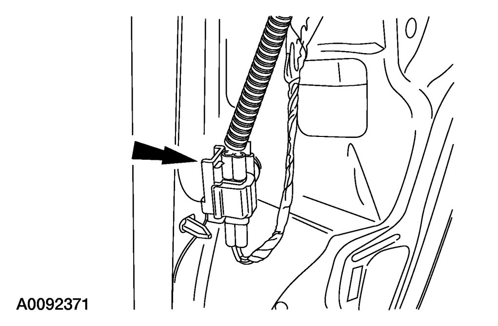 6. Disconnect the safety canopy module electrical connector and detach the connector from the D-pillar.