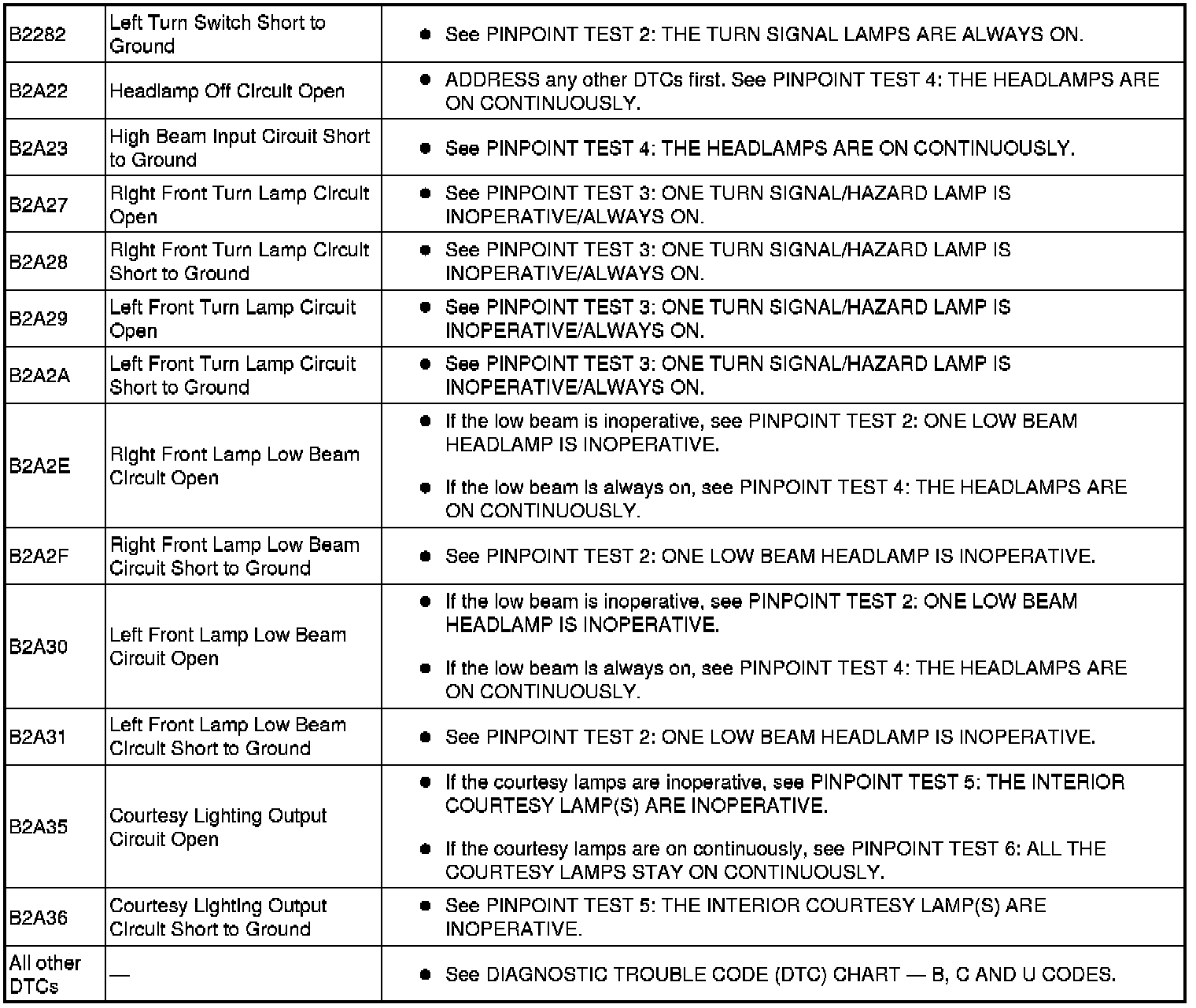 DIAGNOSTIC TROUBLE CODE (DTC) CHART - LIGHTING SYSTEMS