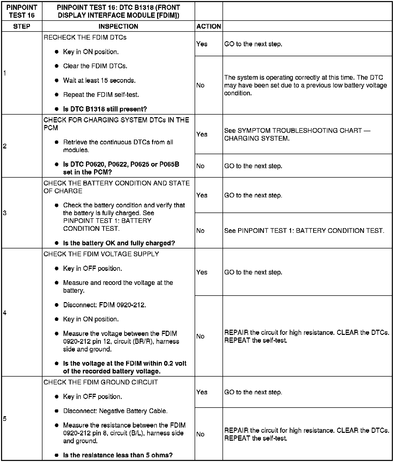 Pinpoint Test 16: DTC B1318 (Front Display Interface Module - FDIM)