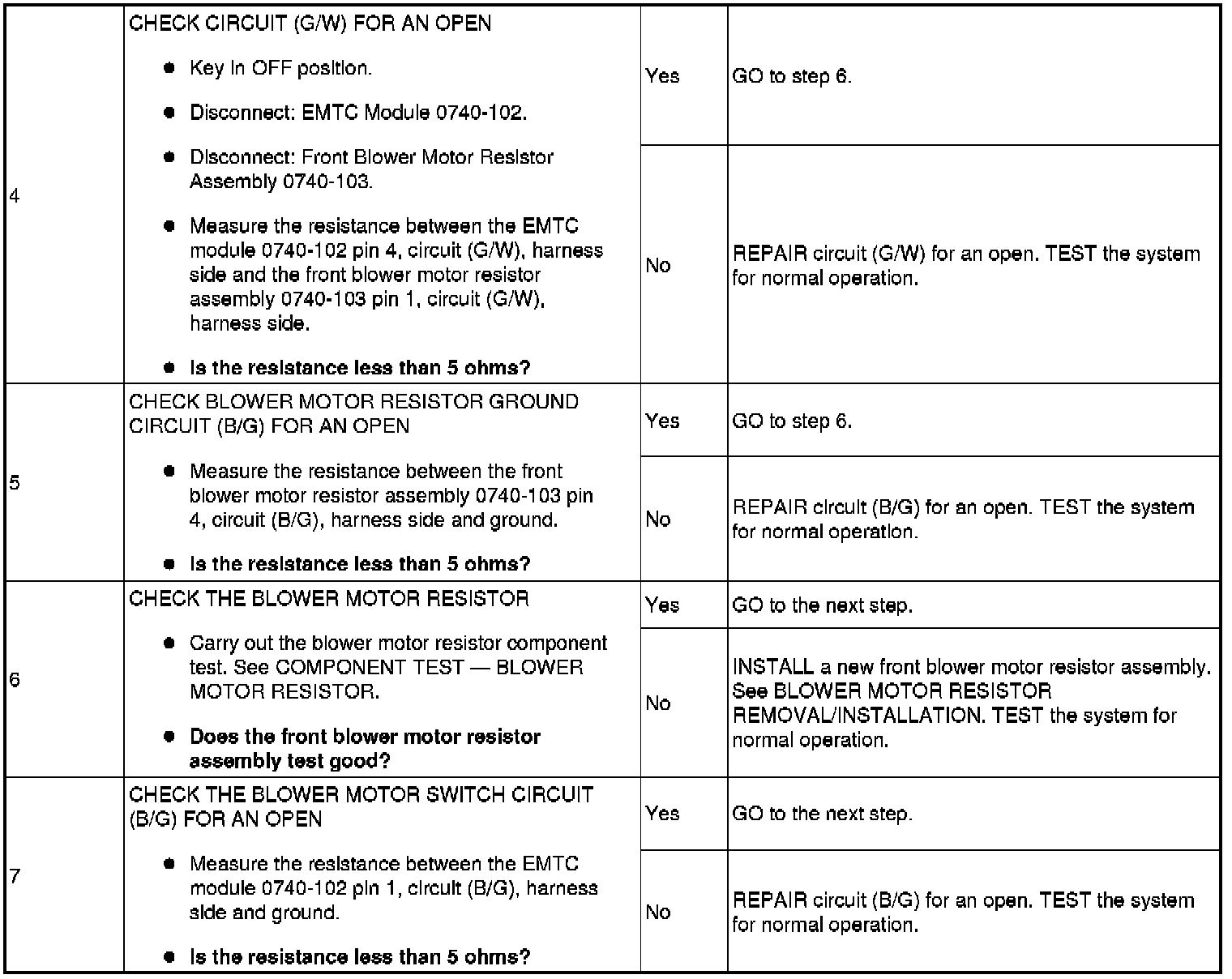 PINPOINT TEST 8: THE BLOWER MOTOR DOES NOT OPERATE CORRECTLY - ELECTRONIC MANUAL TEMPERATURE CONTROL MODULE (EMTC)
