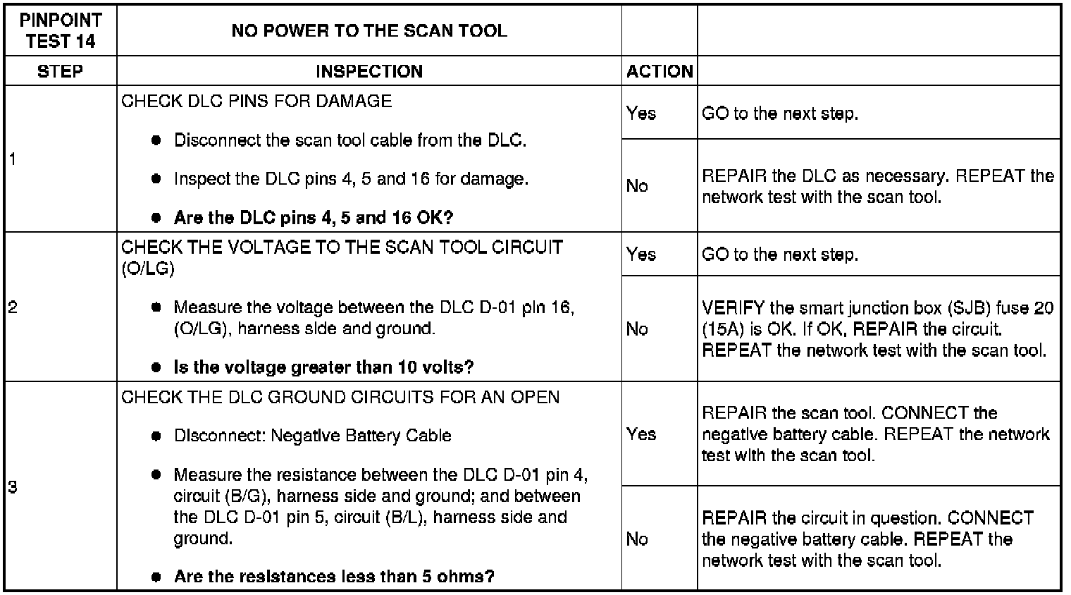 PINPOINT TEST 14: NO POWER TO THE SCAN TOOL