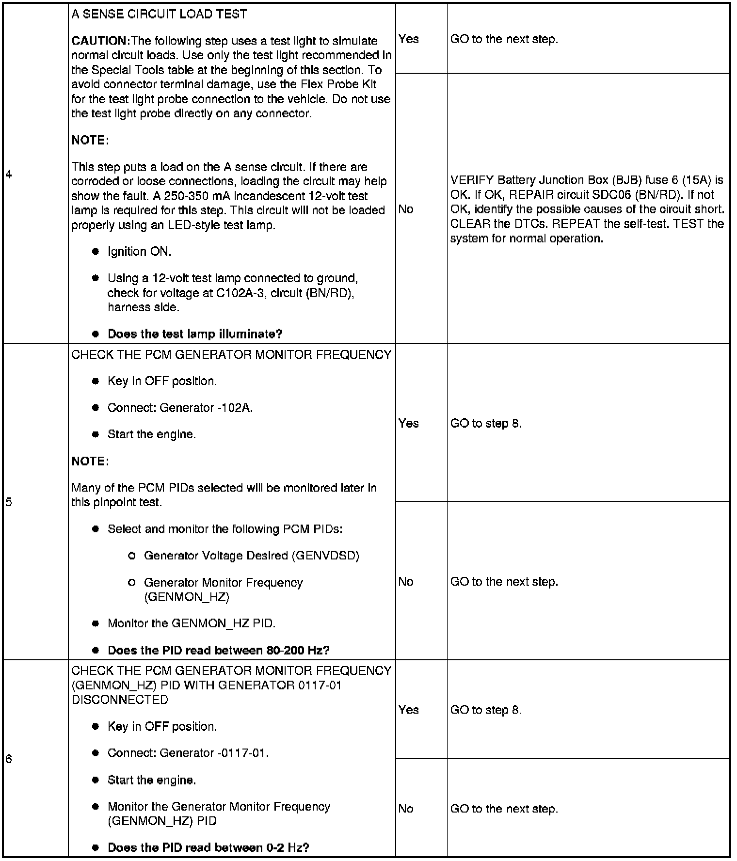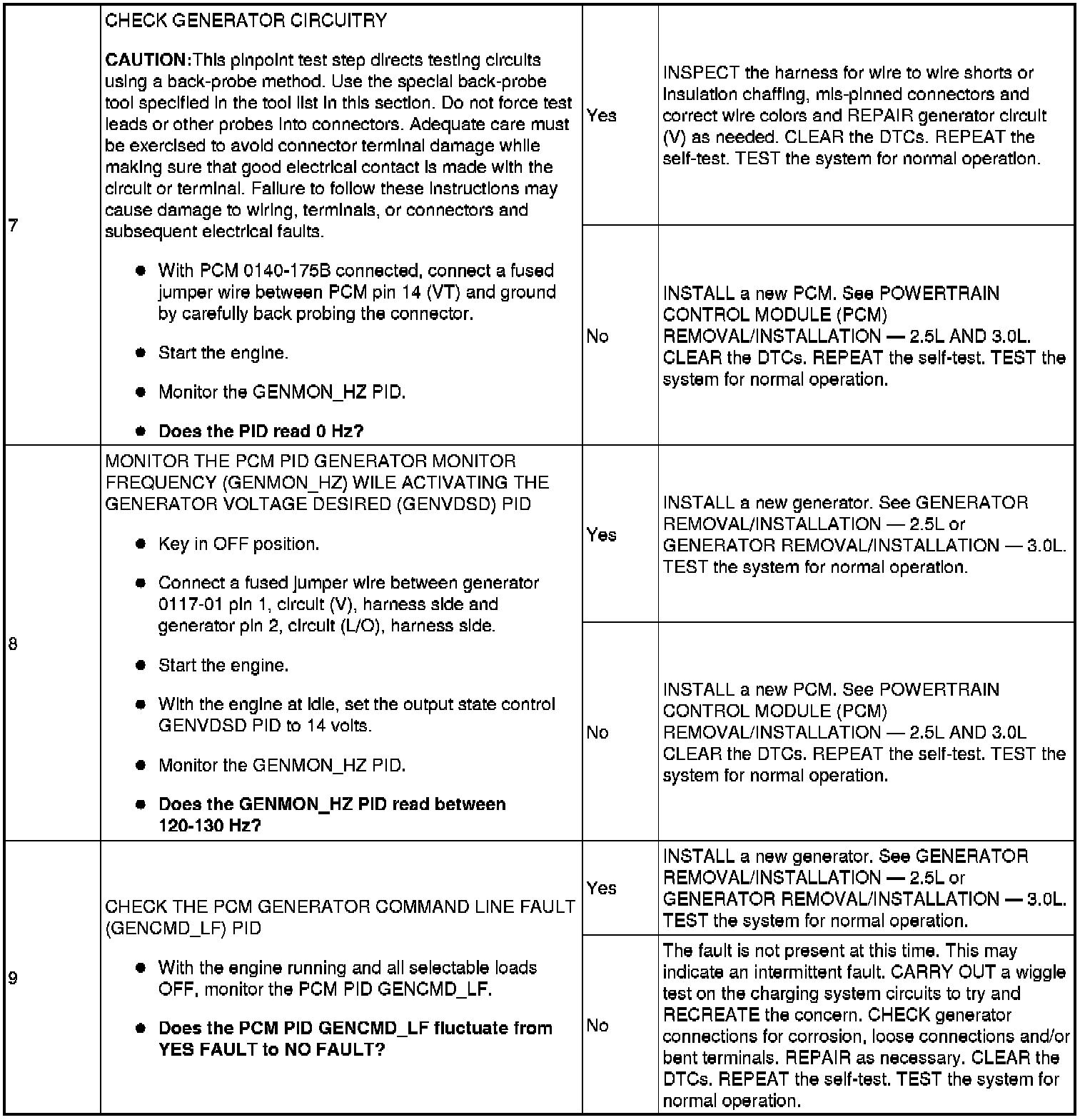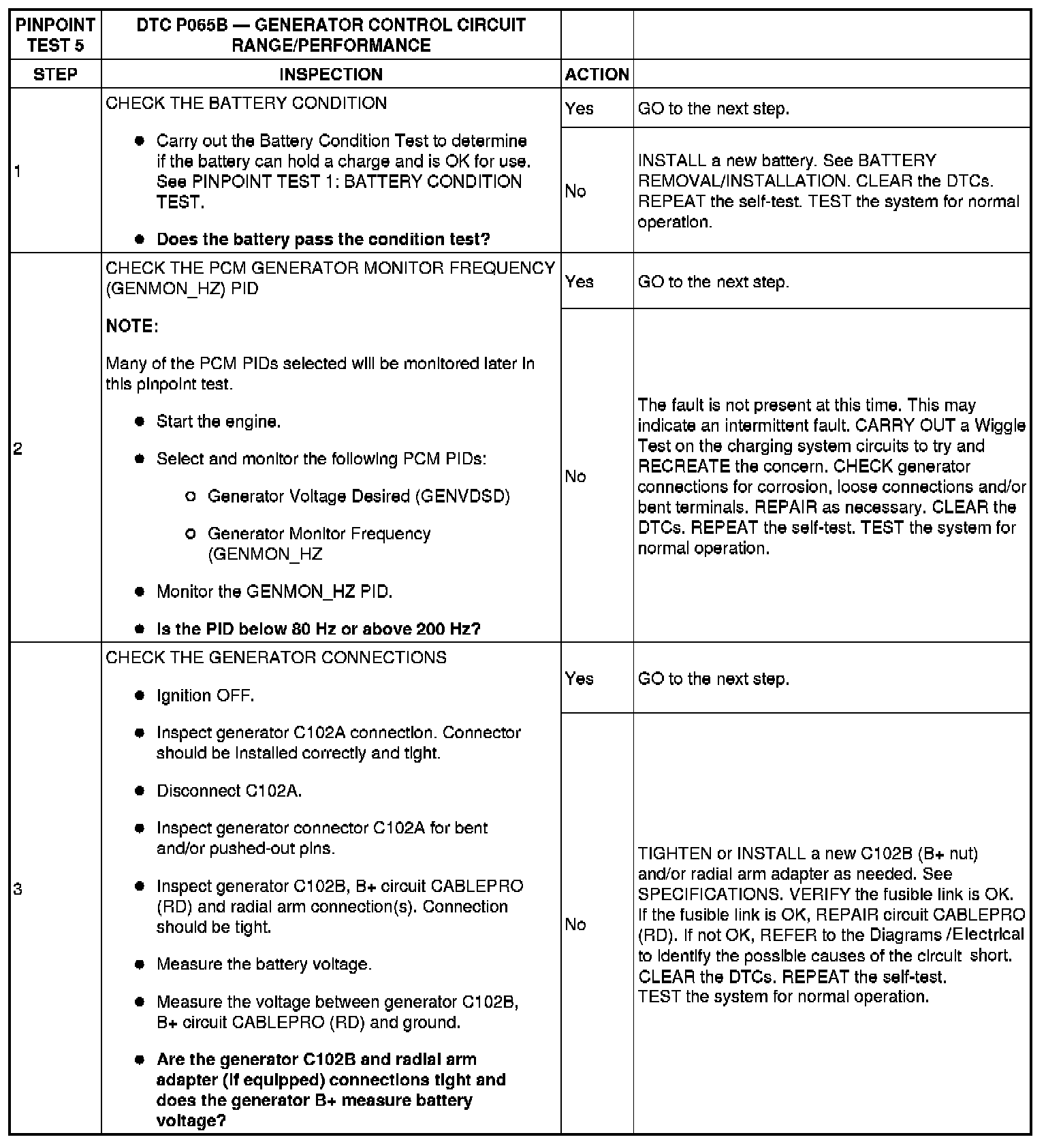 Pinpoint Test 5: DTC P065B - Generator Control Circuit Range/Performance