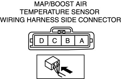 2. Measure the resistance between the MAP/boost air temperature sensor terminals A and B using a tester.