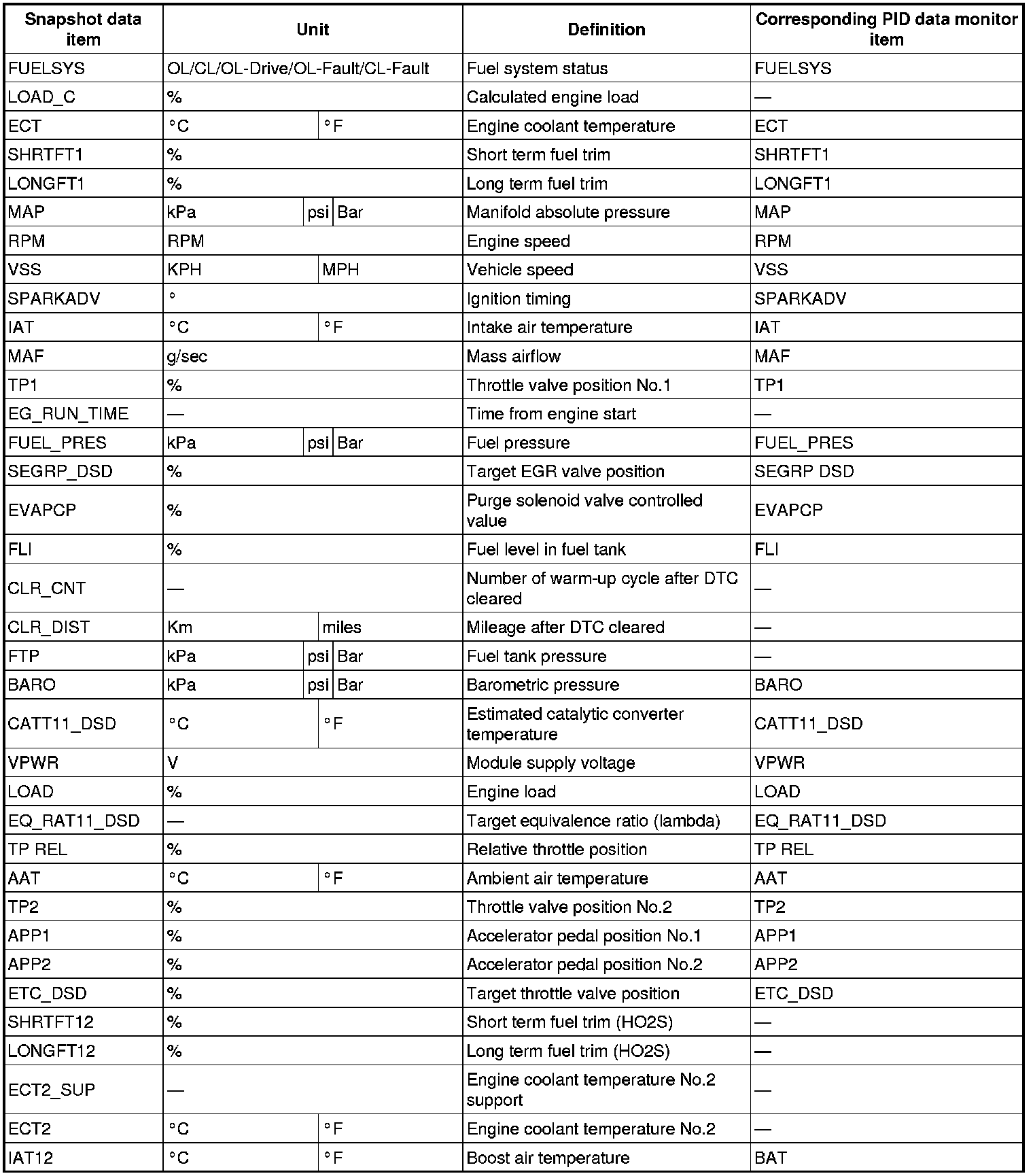 - The recording timing for the freeze frame data/snap shot data differs depending on the number of DTC drive cycles.