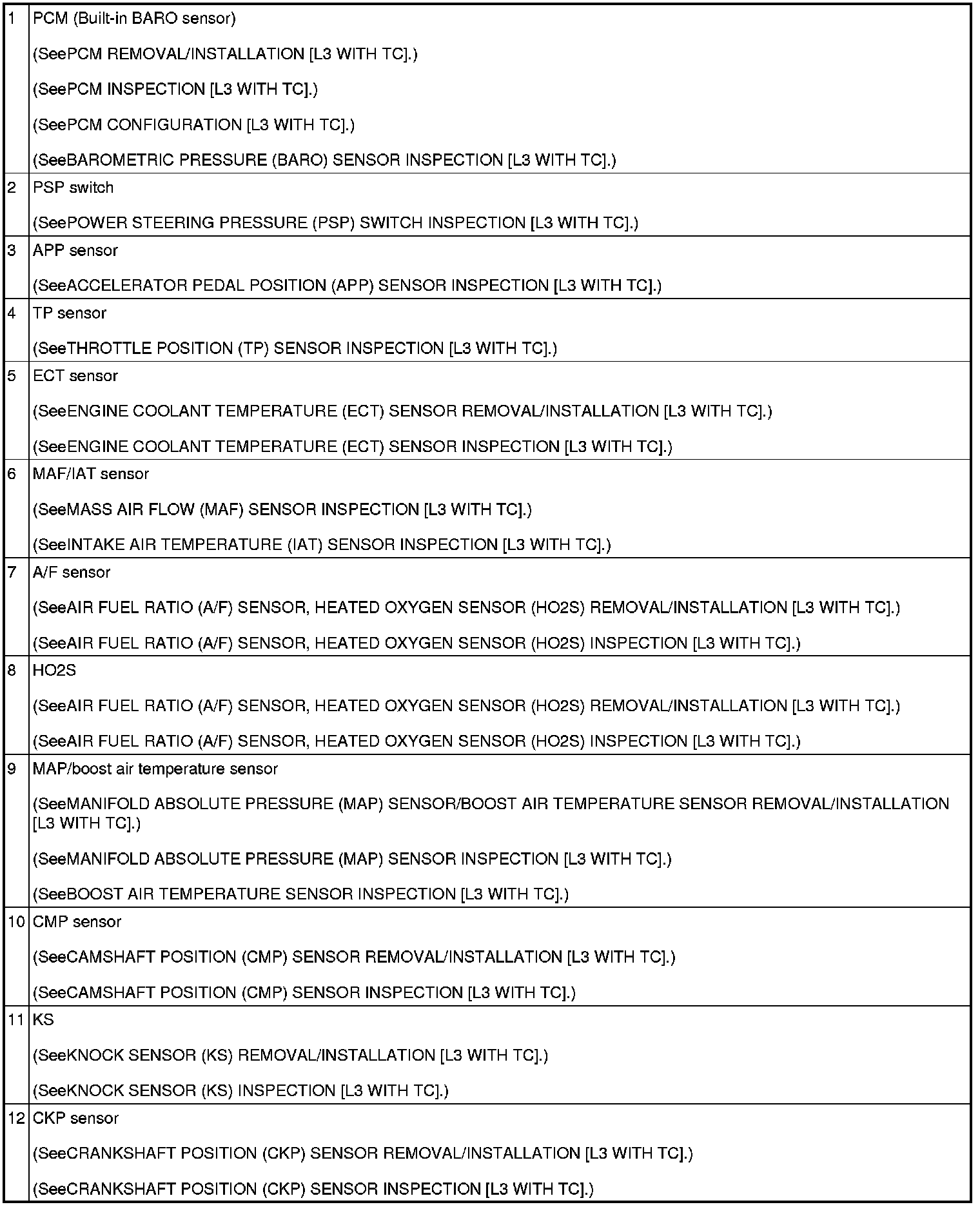 CONTROL SYSTEM COMPONENT LOCATION INDEX [L3 WITH TC]