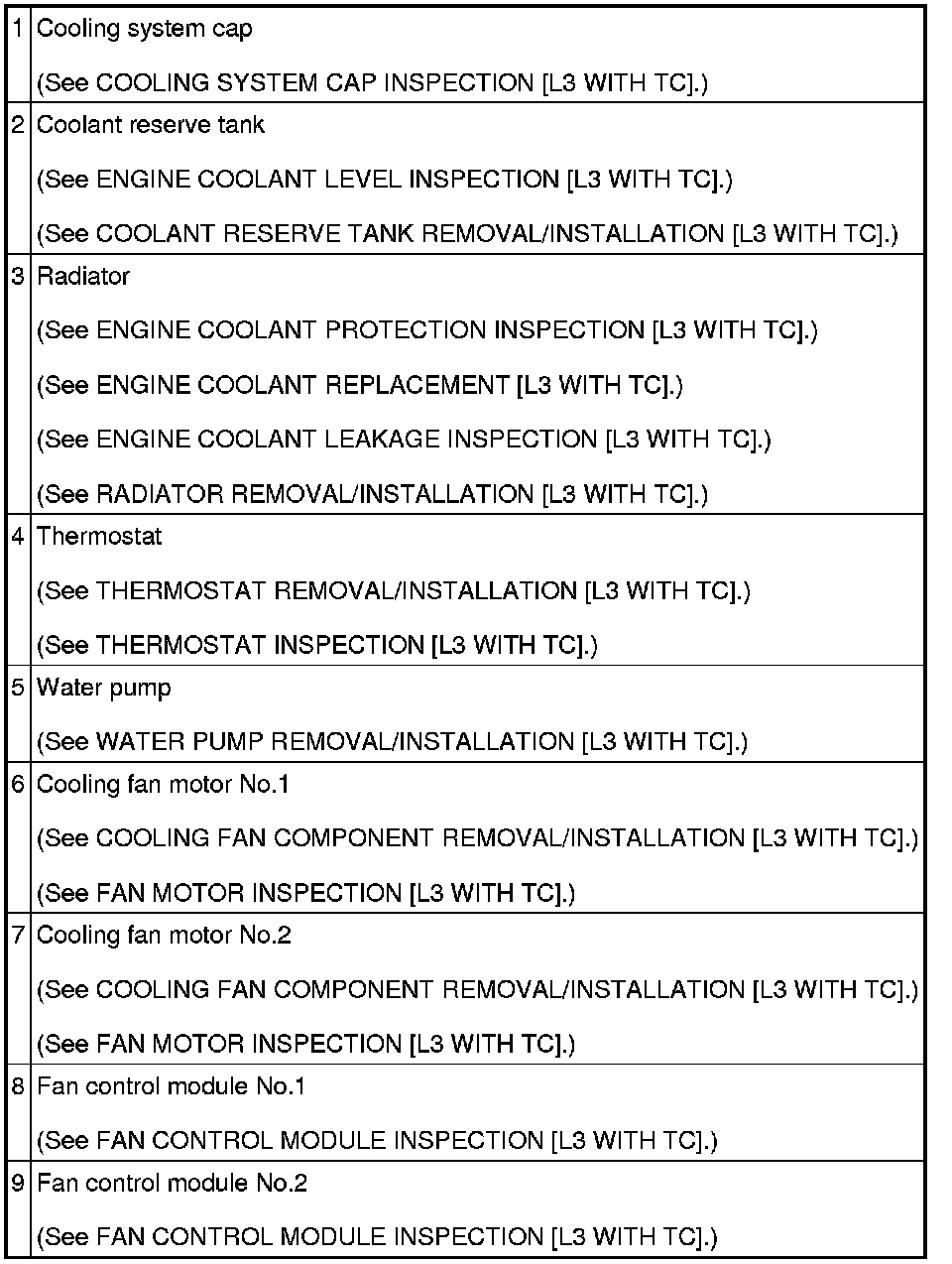 COOLING SYSTEM LOCATION INDEX [L3 WITH TC]