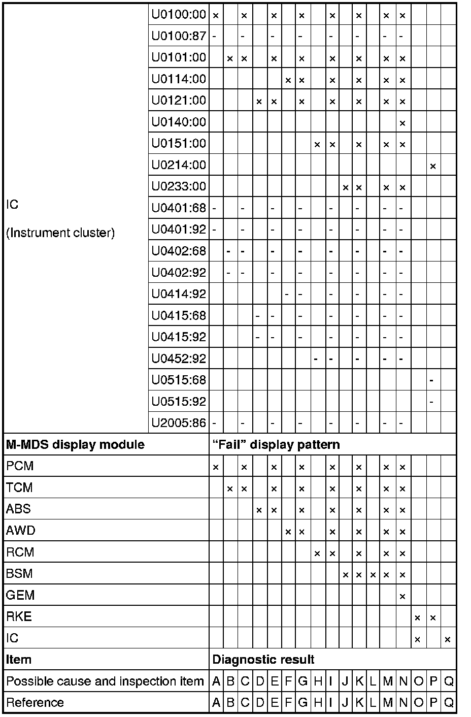 3. Refer to the matching tandem diagnostic results (A to Q) and inspect the possible cause and inspection item.