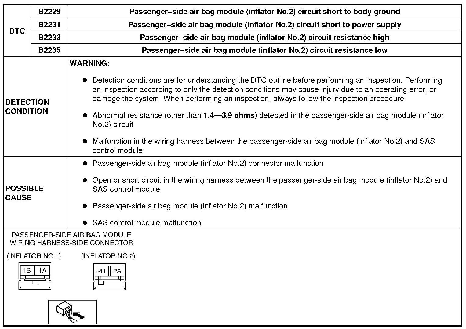 DTC B2229, B2231, B2233, B2235