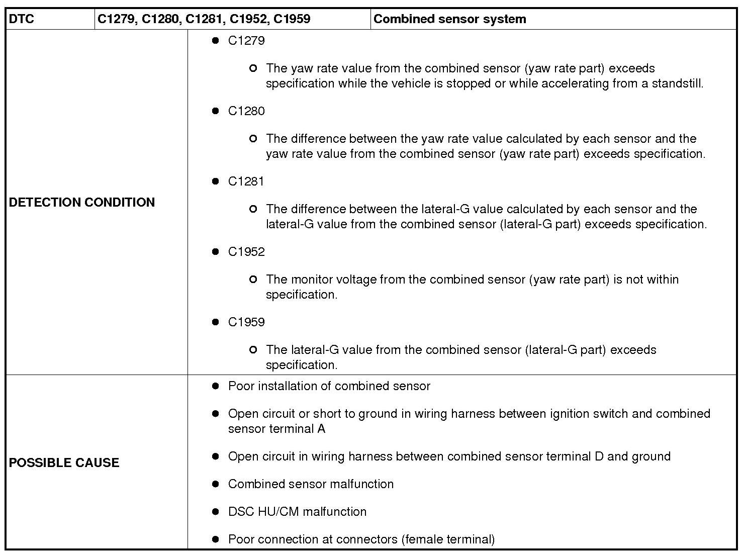 DTC C1279, C1280, C1281, C1952, C1959
