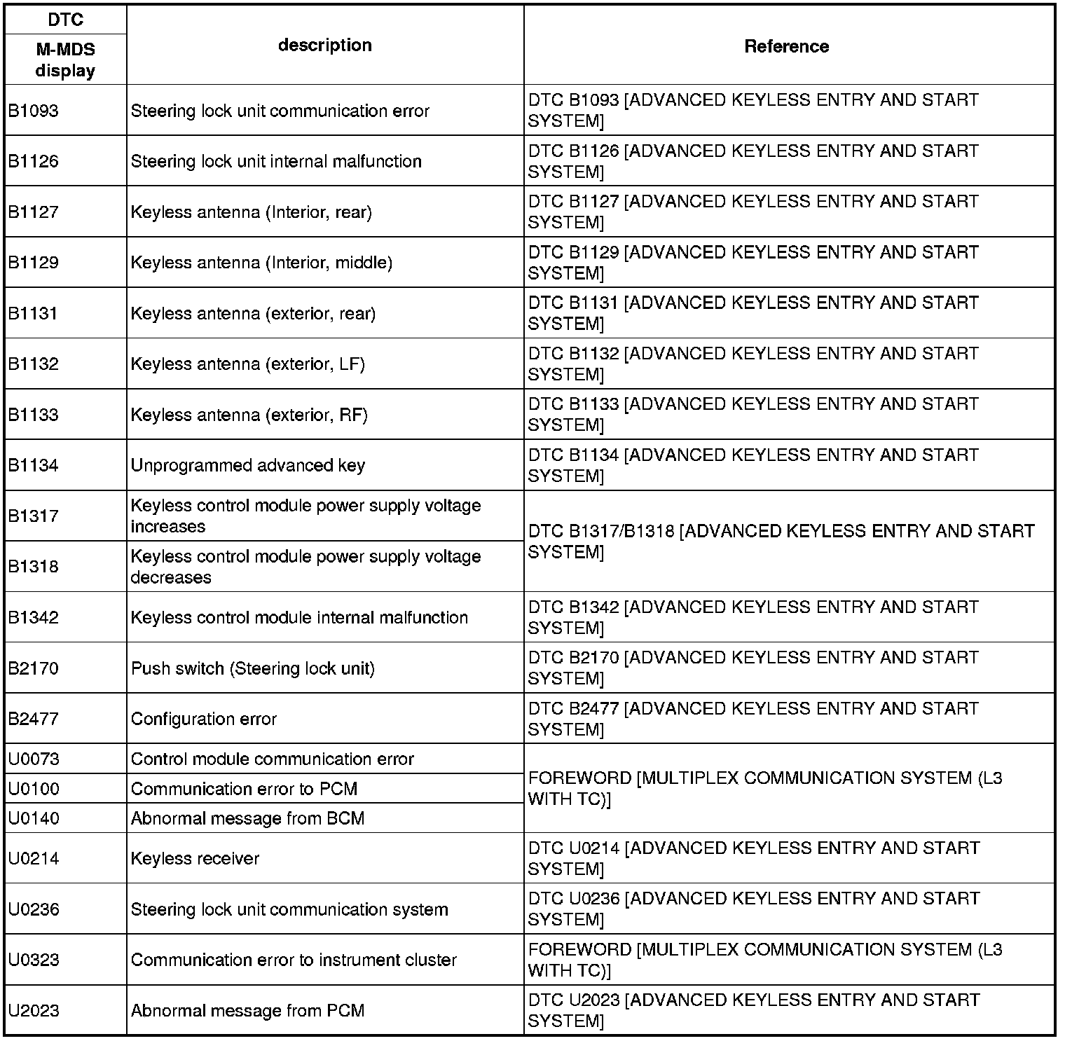 DTC TABLE [ADVANCED KEYLESS ENTRY AND START SYSTEM]