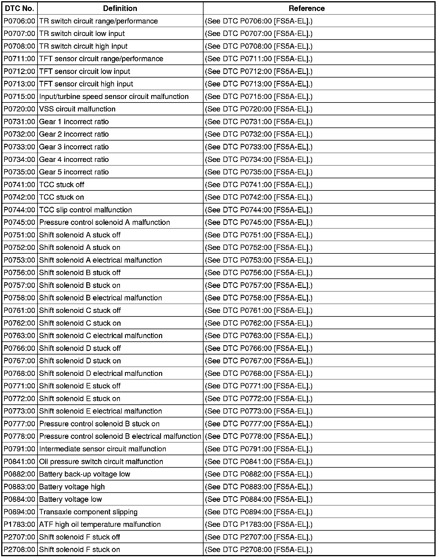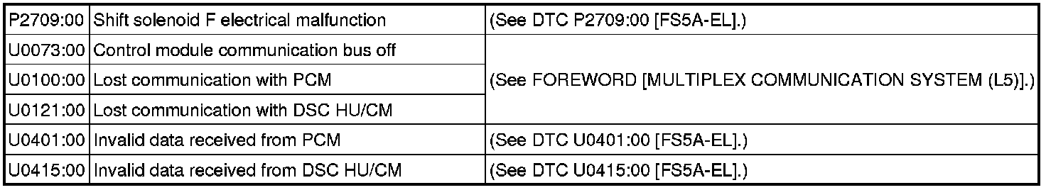 Automatic Transmission/Transaxle - DTC Table FS5A-EL