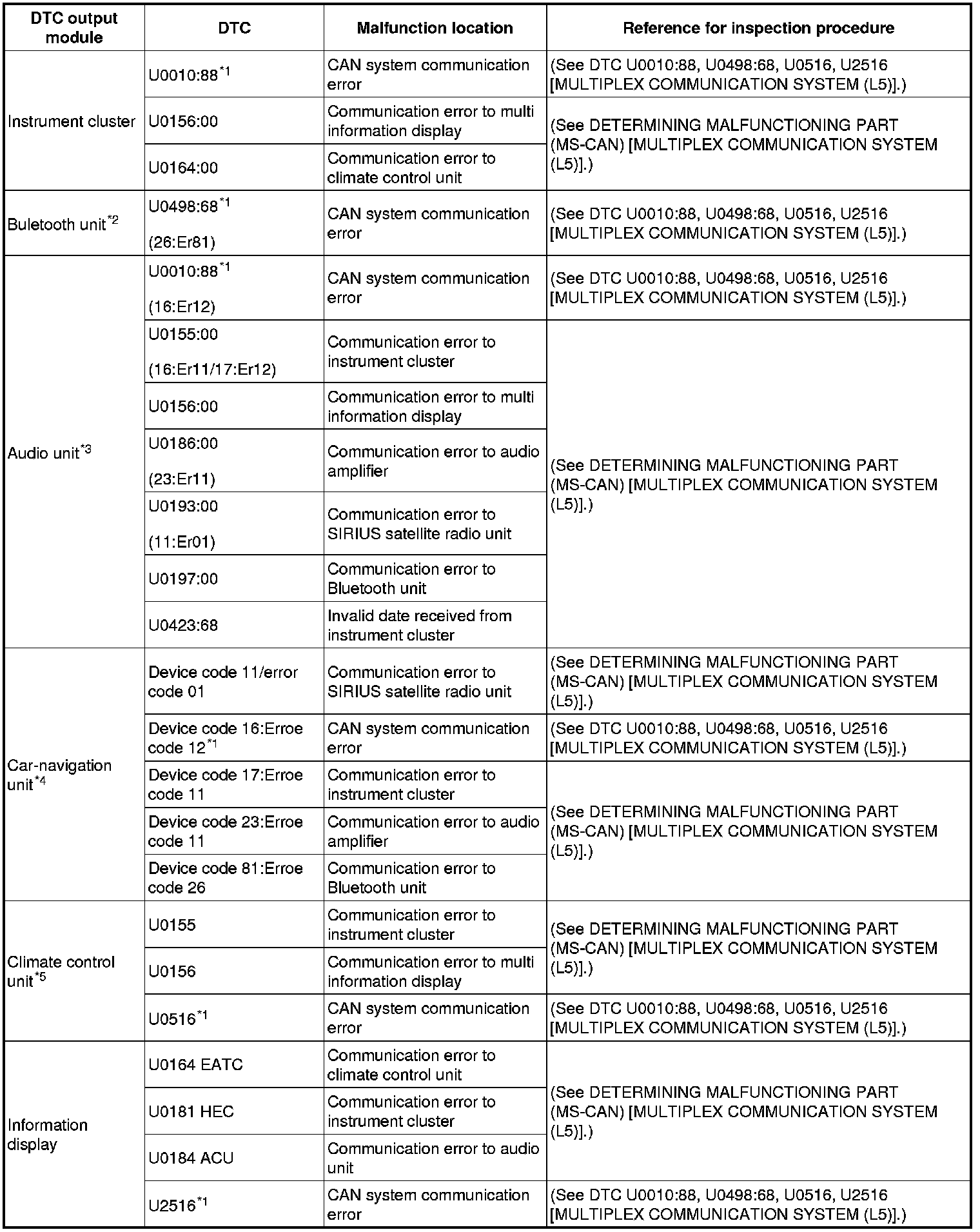 DTC TABLE [MULTIPLEX COMMUNICATION SYSTEM (L5)]