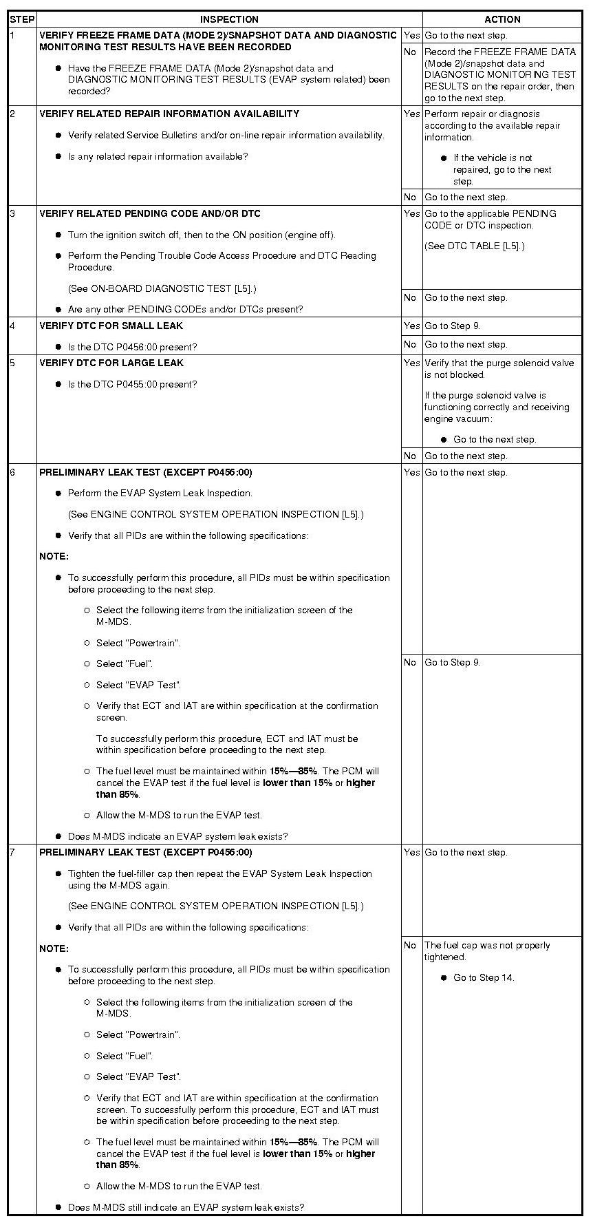 DTC P0442:00, P0455:00, P0456:00 [L5]