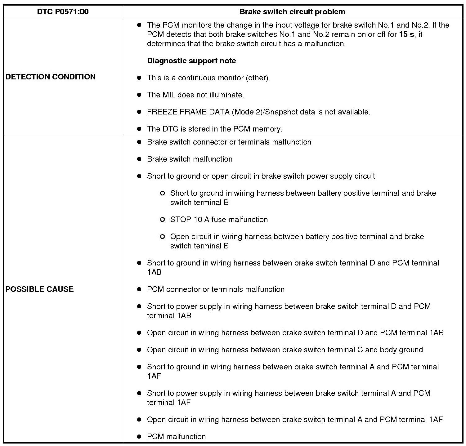 DTC P0571:00 [L5]