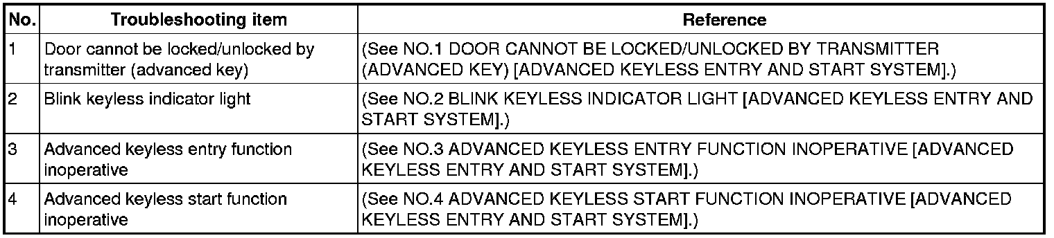 SYMPTOM TROUBLESHOOTING CHART [ADVANCED KEYLESS ENTRY AND START SYSTEM]