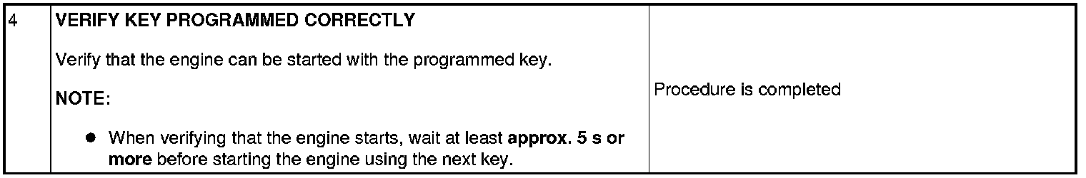 - If the engine is started during immobilizer system-related parts programming, the programming mode cancels. Therefore, do not start the engine unless indicated in the procedure. Repeat the procedure from the beginning if the engine is started during the immobilizer system-related parts programming.