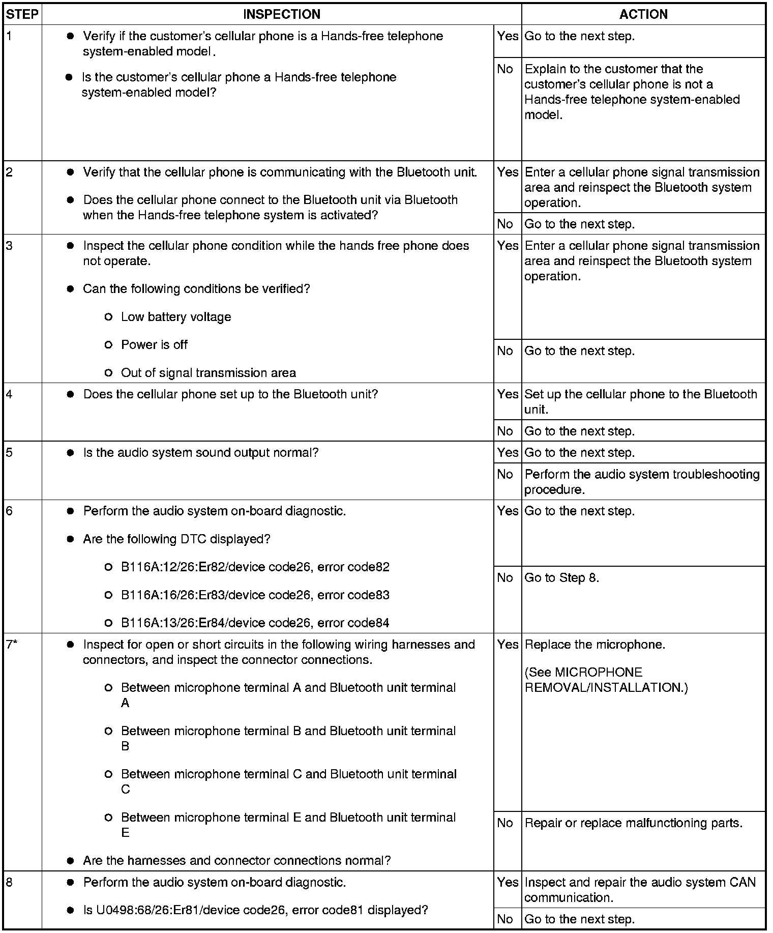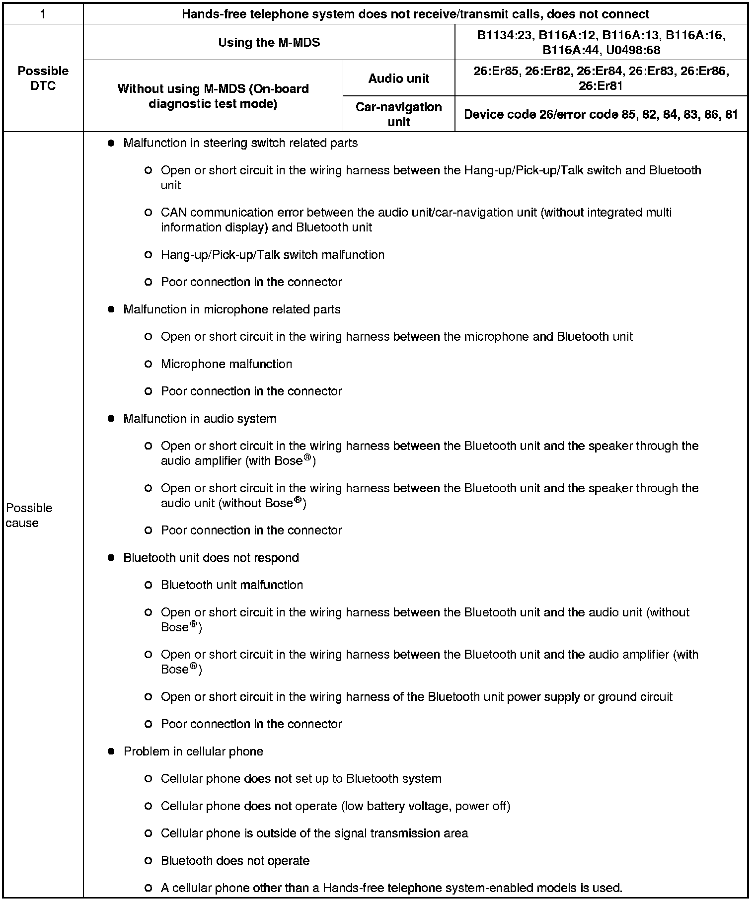 No.1 HANDS-FREE TELEPHONE SYSTEM DOES NOT RECEIVE/TRANSMIT CALLS, DOES NOT CONNECT [Bluetooth SYSTEM (HANDS-FREE TELEPHONE (HF/TEL) SYSTEM)]