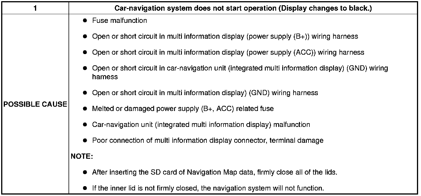 No. 1 Navigation System Does Not Start Operation (Display Changes To Black.)