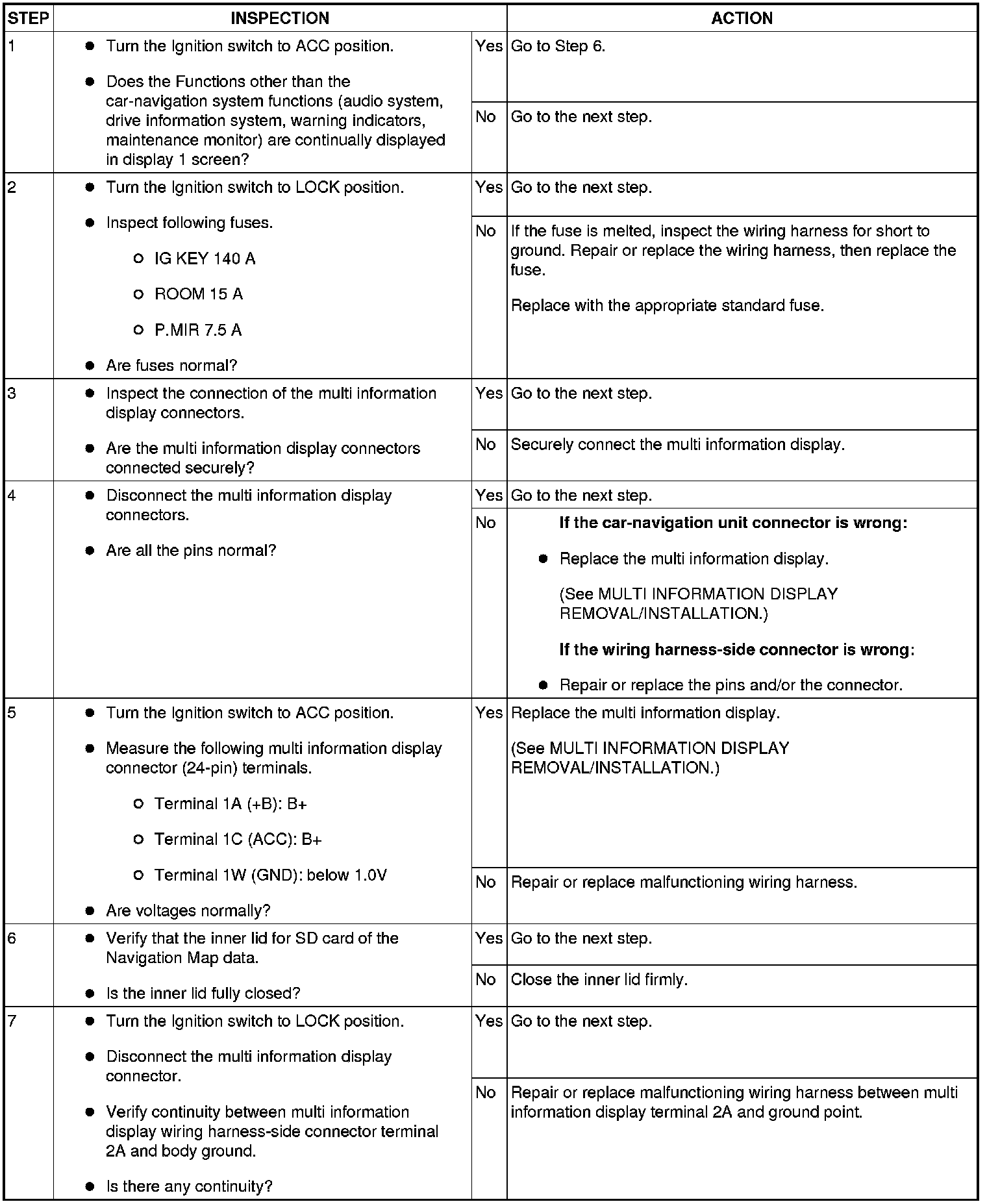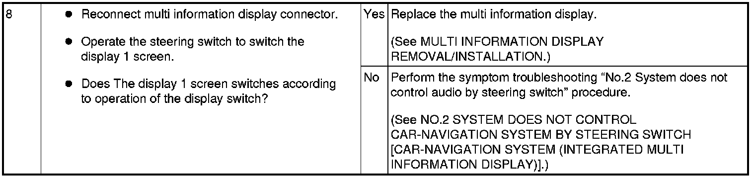DOES NOT START OPERATION (DISPLAY CHANGES TO BACK.) [CAR-NAVIGATION SYSTEM (INTEGRATED MULTI INFORMATION DISPLAY)]