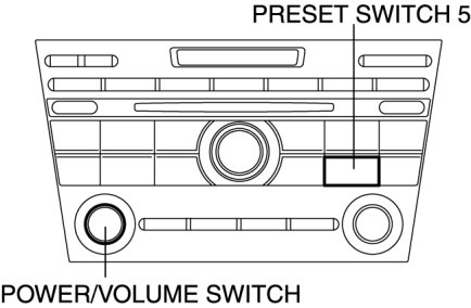 3. While pressing the POWER/VOLUME switch, simultaneously press the PRESET switch 5 for 3 s or more.