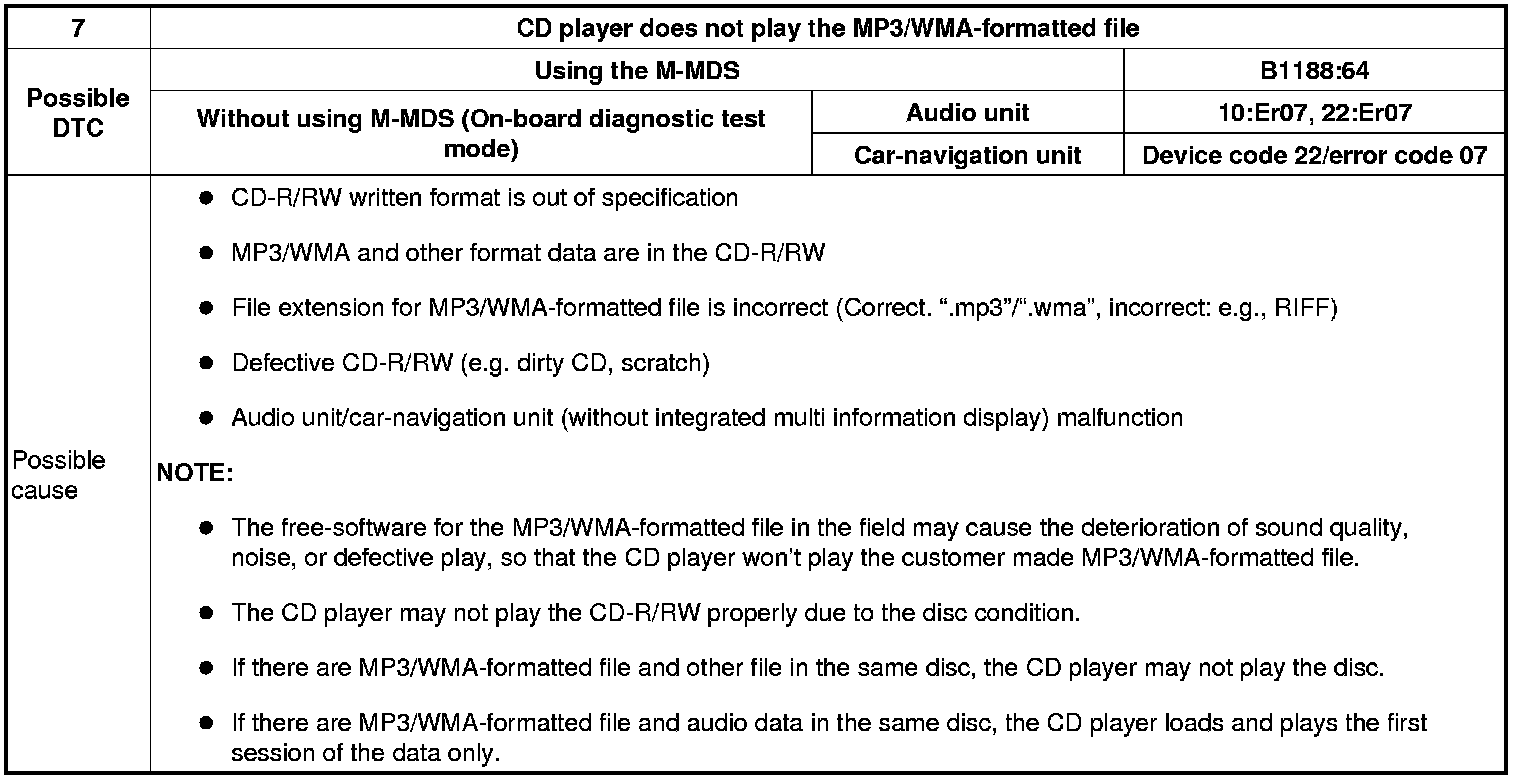 NO.7 CD PLAYER DOES NOT PLAY THE MP3/WMA-FORMATTED FILE [CD PLAYER/CHANGER]
