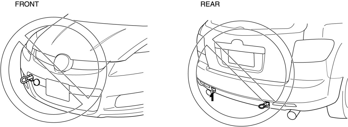 - To prevent damage to the vehicle, do not use the tiedown eyelet (front) and the left/right tiedown eyelet (rear) for towing the vehicle using another vehicle.