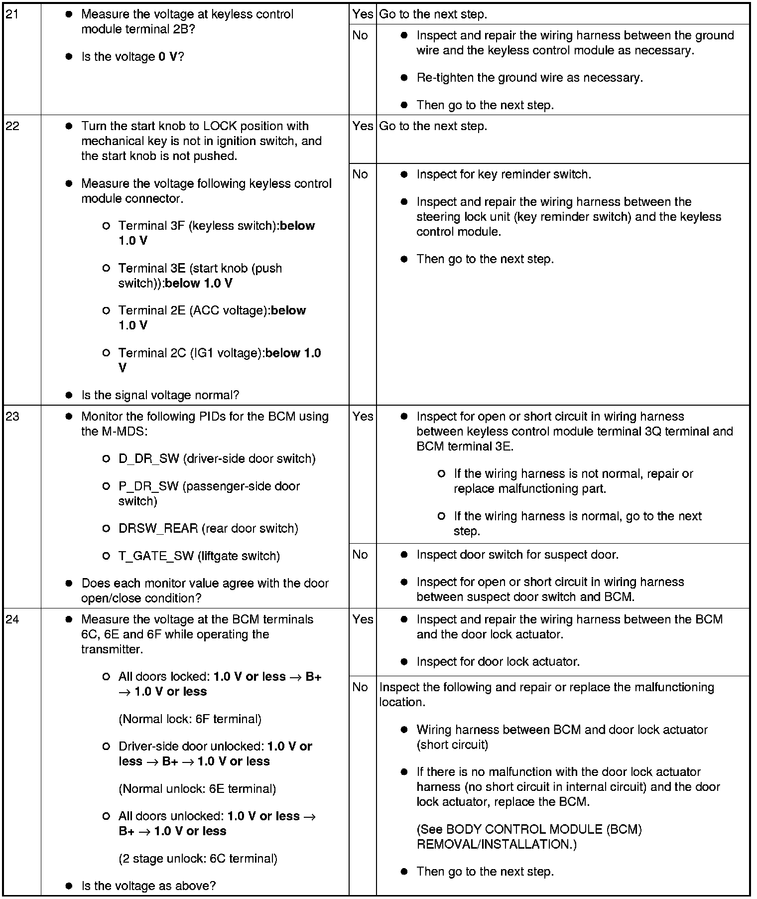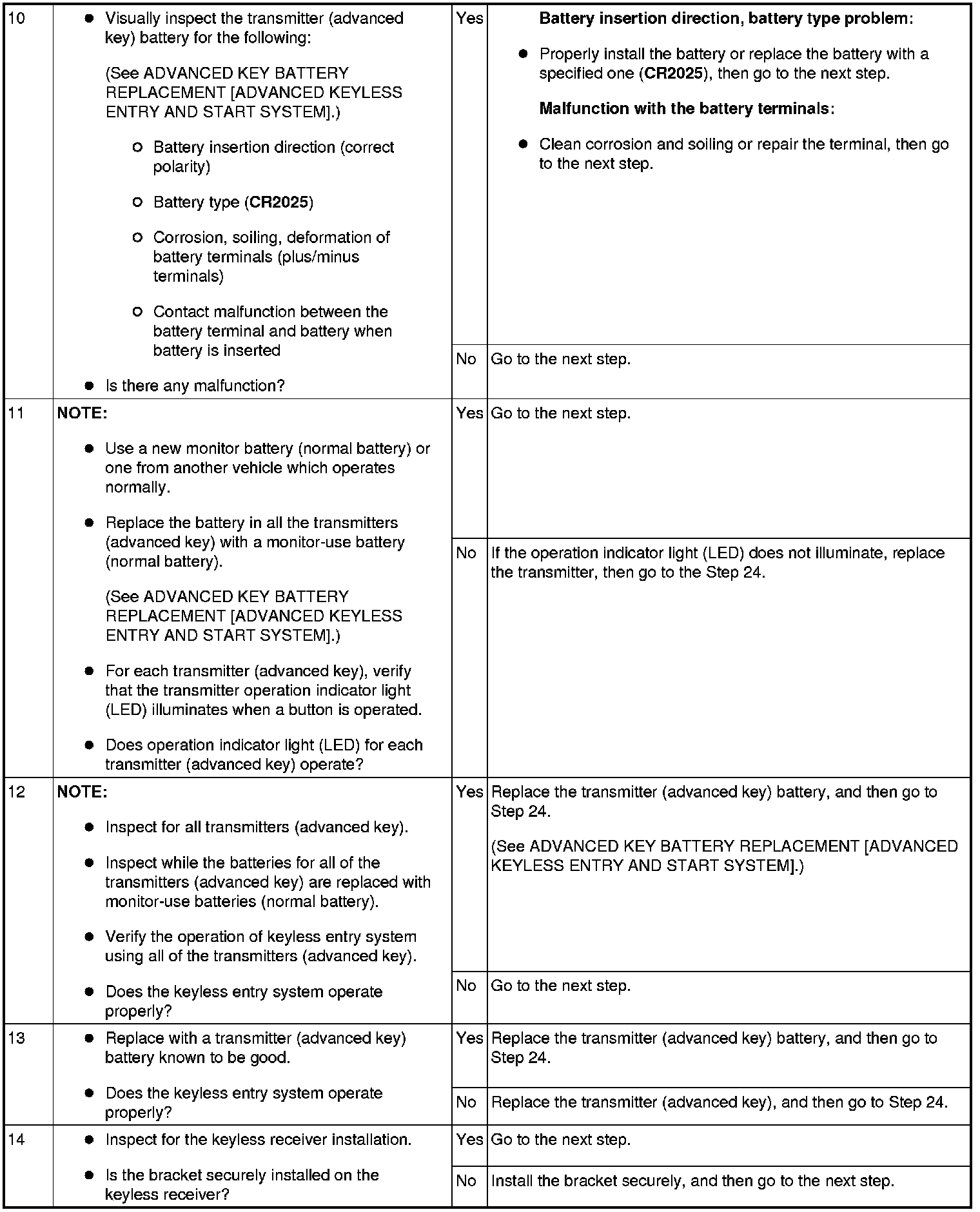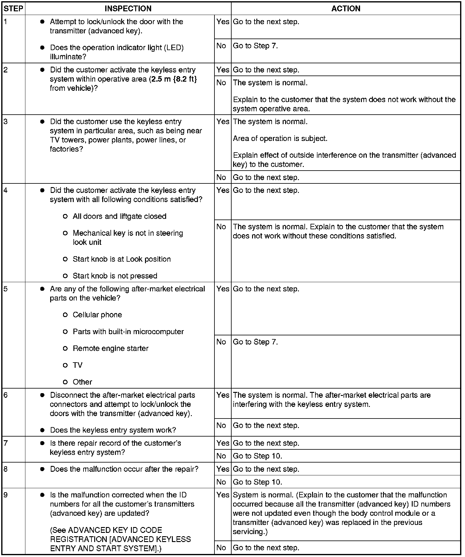 No. 1 Door Cannot Be Locked/Unlocked By Transmitter (Advanced Key)