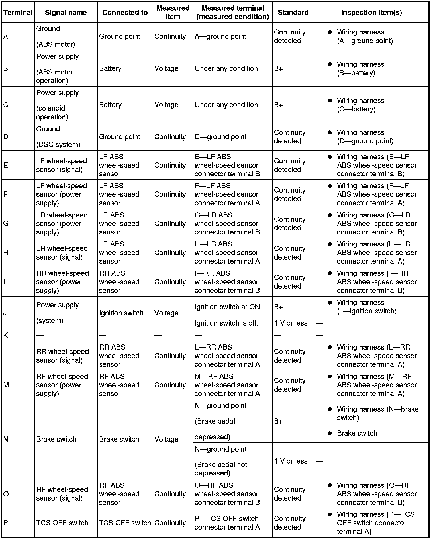 3. Attach the tester lead to the DSC HU/CM wiring harness-side connector, then inspect voltage, continuity or resistance according to the standard (reference value) on the table.