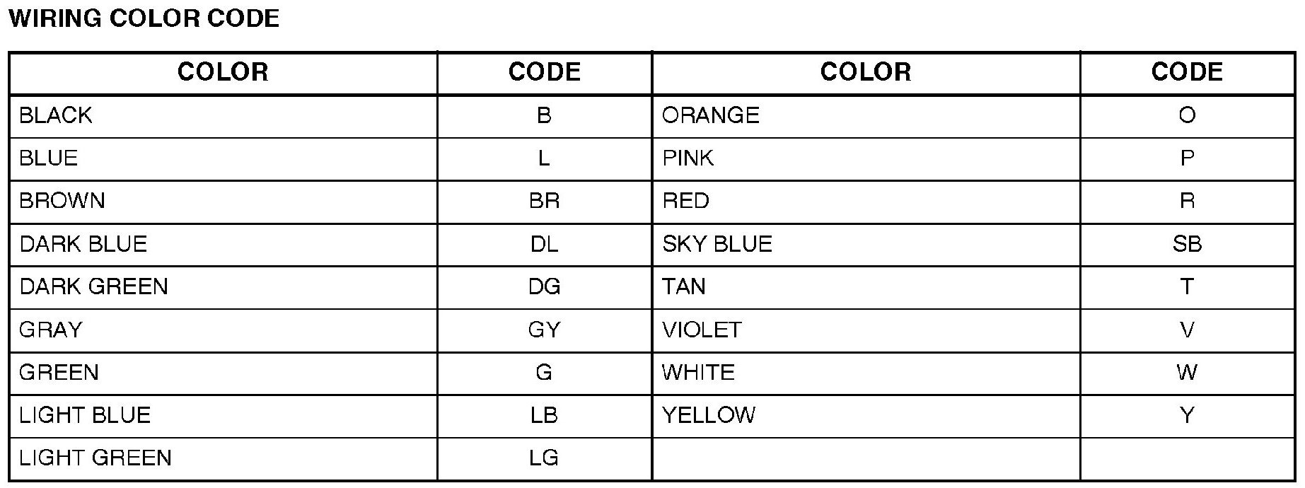 WIRING COLOR CODE