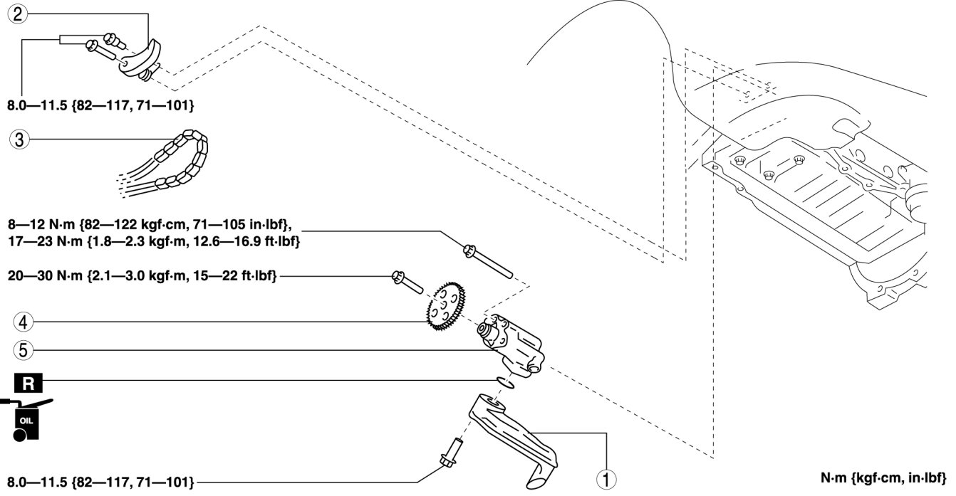 - Step 2: 17-23 Nm {1.8-2.3 kgf-m, 12.6-16.9 ft-lbf}