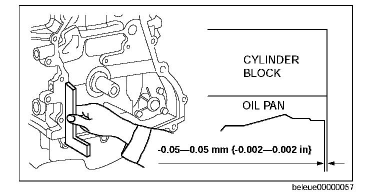 2. Use a square ruler to unite the oil pan and the cylinder block junction side on the engine front cover side.