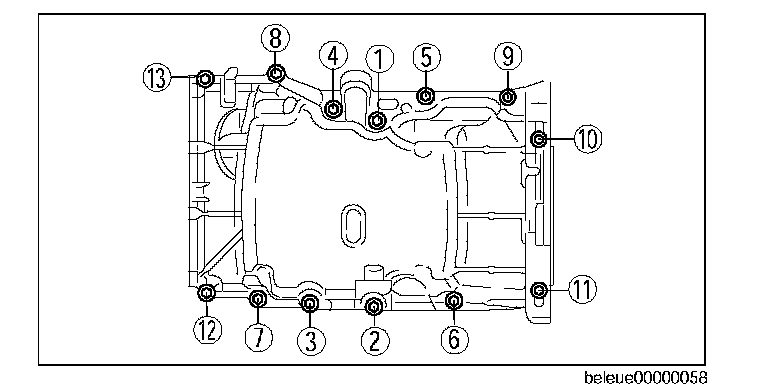 3. Tighten the rear oil pan bolts in the order as shown in the figure.