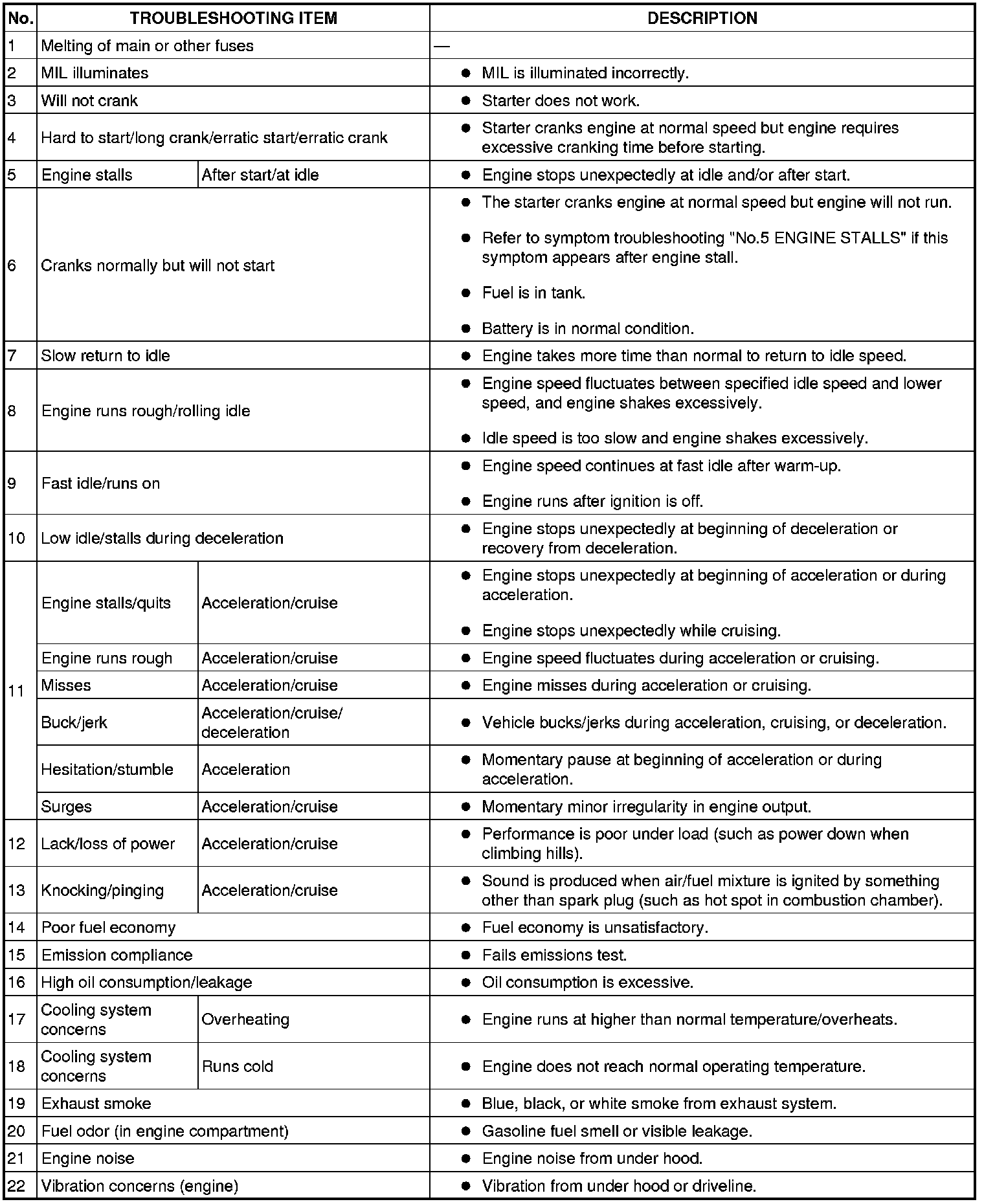 Confirm trouble symptom using the following diagnostic index, then go to appropriate troubleshooting chart.