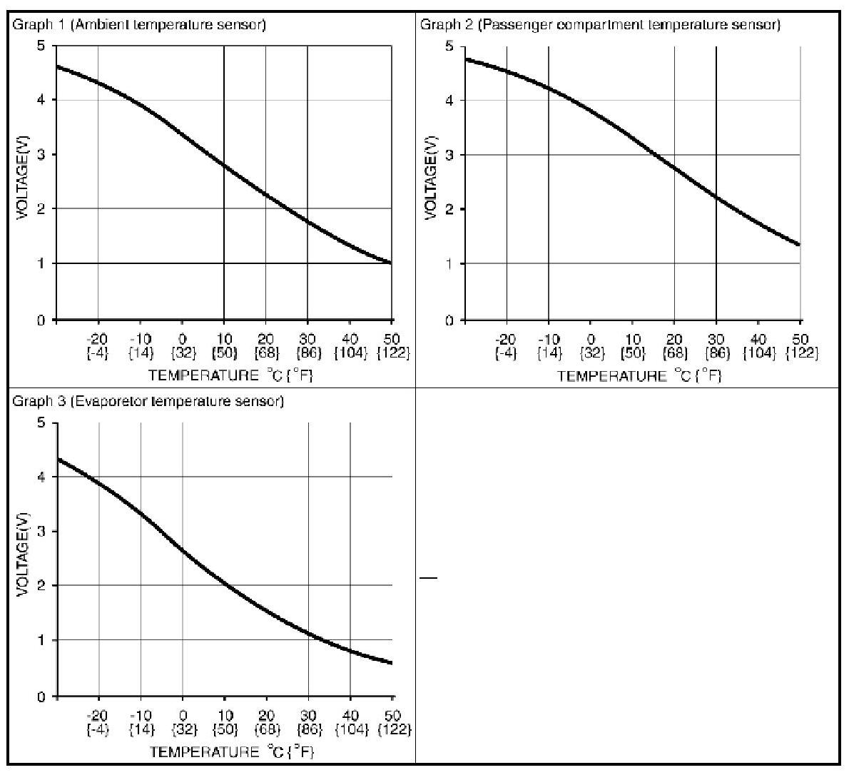 5. By inserting the positive (+) lead of the tester into each climate control unit terminal, measure the voltage according to the terminal voltage table.