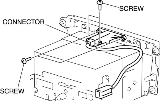 6. Insert a tape-wrapped flathead screwdriver in the position shown in the figure, lift it up in the direction of the arrow and shift the tab.