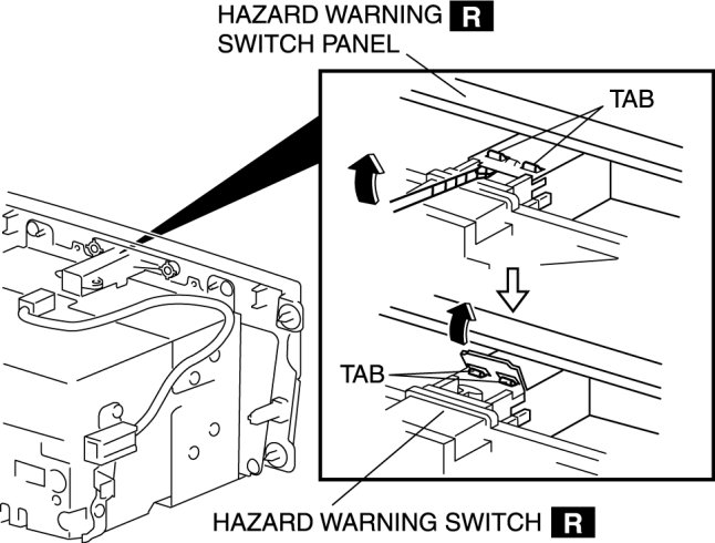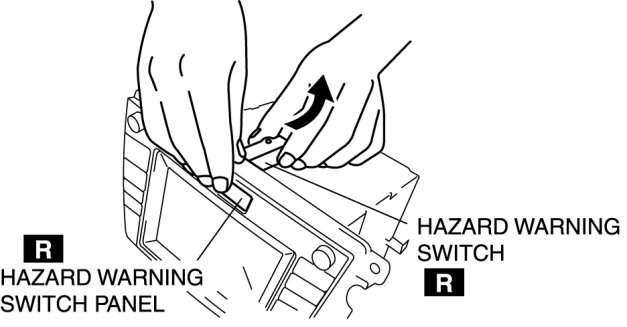 - The hazard warning switch cannot be reused because it is removed by prying out the connection part of the hazard warning switch panel and hazard warning switch. Do not remove the hazard warning switch except when replacing it.