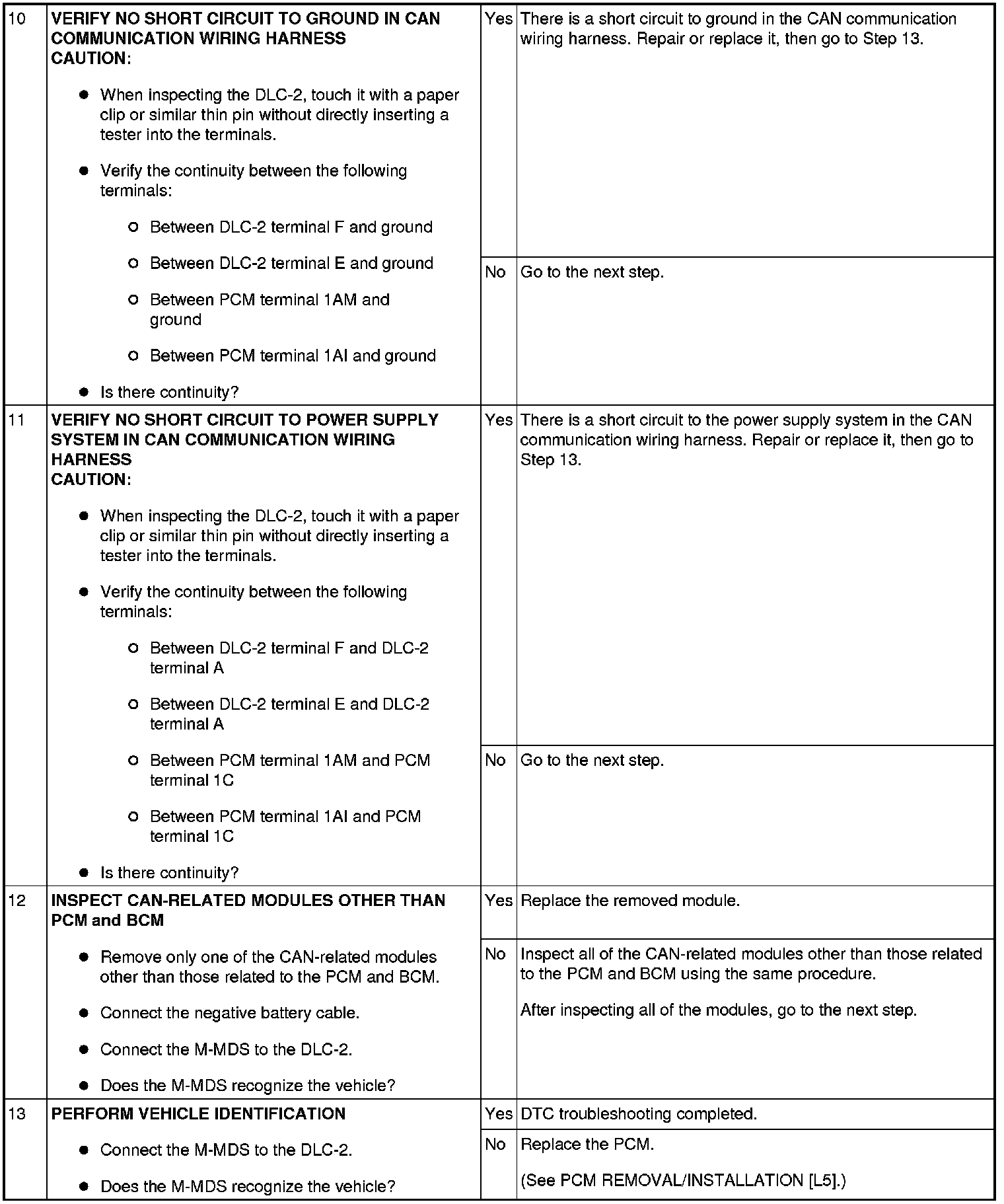 - Possible causes of communication errors between the M-MDS and vehicle include communication circuit interruption due to an open circuit in the CAN communication wiring harness, or poor contact of connector terminals, or a BUS OFF condition due to a short circuit in the CAN communication wiring harness.