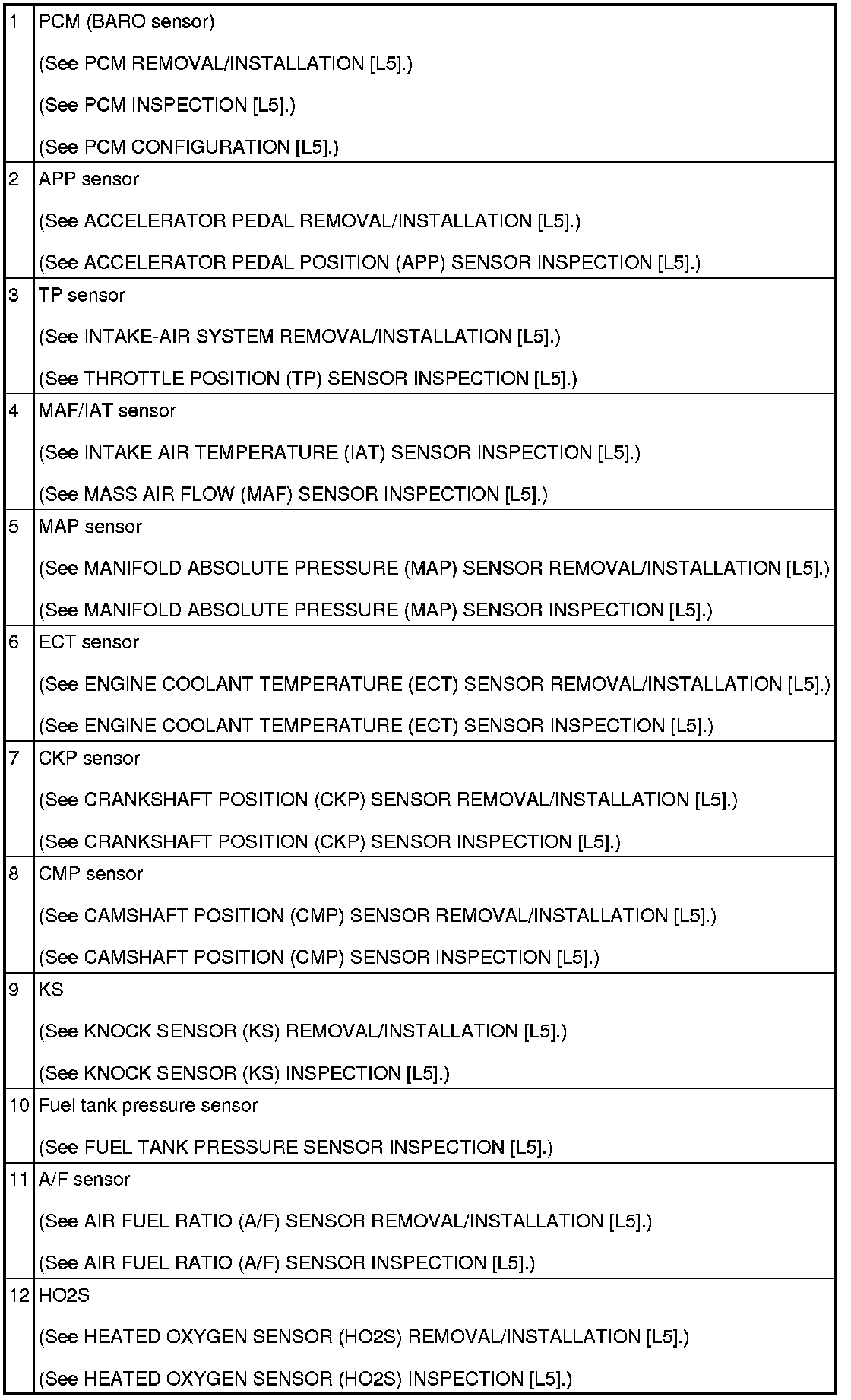 CONTROL SYSTEM LOCATION INDEX [L5]