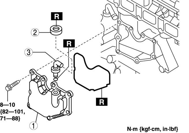 - Be sure to replace the old retainer with a new one to prevent the escape of blow-by gas. Reinstalling the old retainer will reduce airtightness.