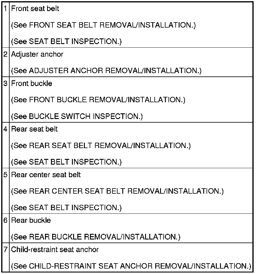 Seat Belt Systems: Locations