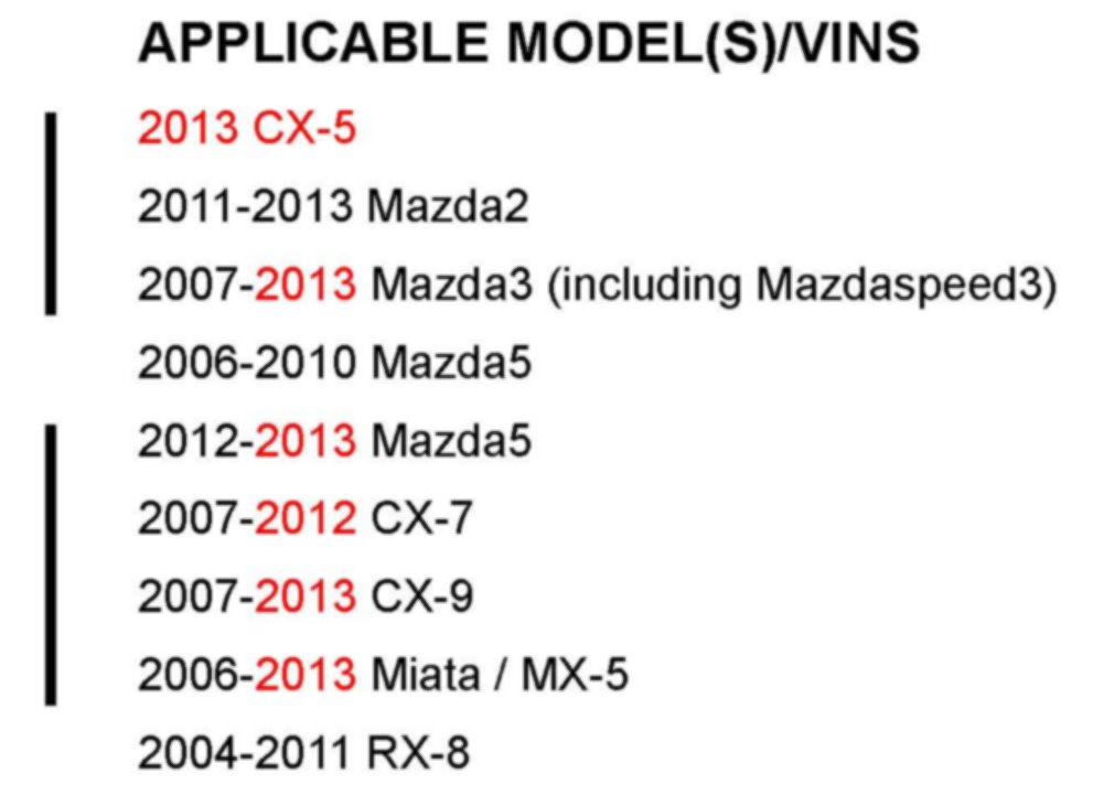 APPLICABLE MODEL(S)/VINS