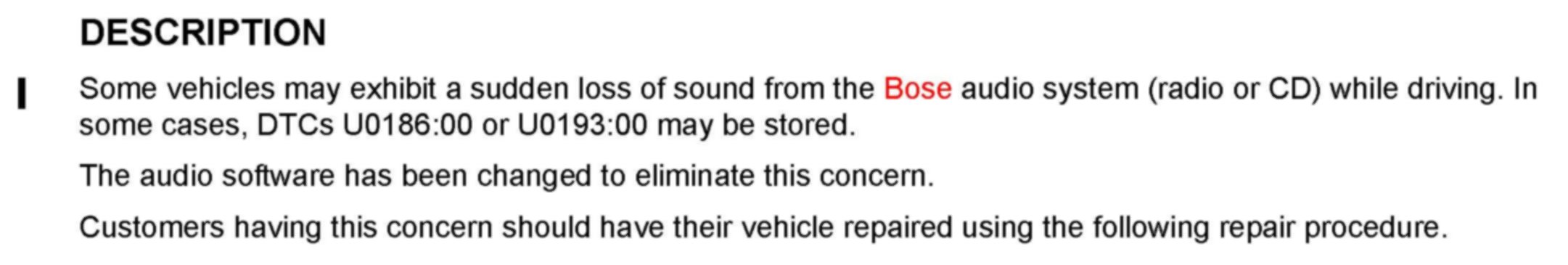 Subject: SUDDEN LOSS OF SOUND FROM BOSE AUDIO SYSTEM